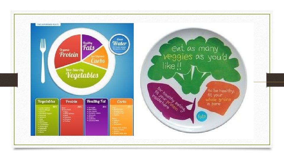 Vegetables and fruit • Provide carbohydrate, vitamins and minerals, fibre and are low in fat. • • • Eat them with most meals. Great snack food. How much do I need? At least 3 servings of vegetables and 2 servings of fruit every day. Eat many different coloured vegetables and fruit: tomato or strawberry; broccoli or kiwifruit; carrot or mandarin; eggplant or plum; potato or pear.