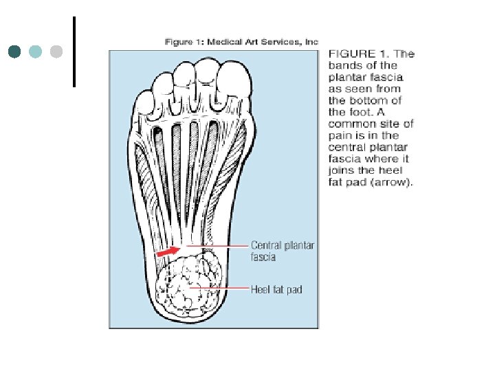 Plantar Fasciitis Cause: Running, toe running, wrong shoes (acute and chronic) ¢ S/S: Pain near heel. Similar signs as heel bruise ¢ Treatment: RICE, stretching, IM, NSAIDs, pad heel. ¢ Prevention: Stretching ¢
