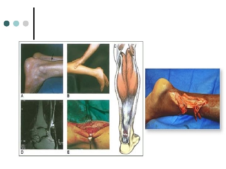 Achilles Tendon Rupture Cause: Sudden, forceful plantar flexion of the ankle with a chronically tight tendon. ¢ S/S: Feel or hear a pop. Feel as if they’ve been kicked in the leg. Inability to plantar flex foot. ¢ TX: Surgery vs. Cast ¢ Prevention: Stretching and proper care of any tendonitis ¢