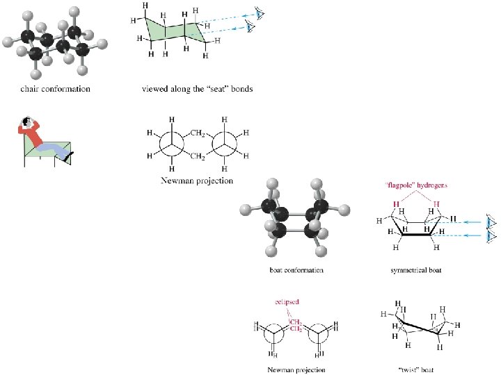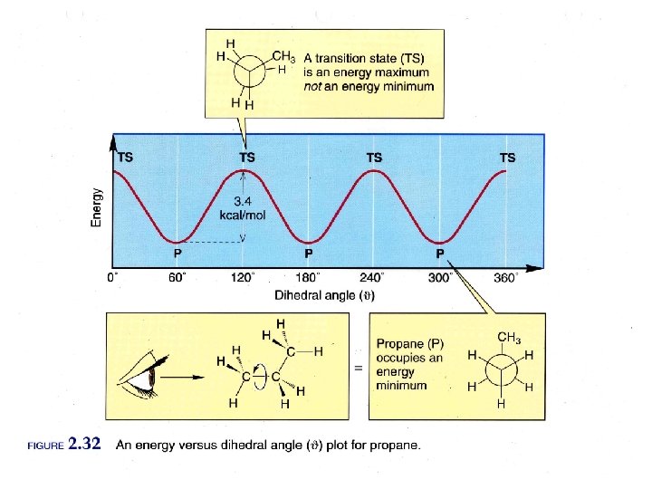 Conformations: the various shapes that a molecule can assume by rotations about single bonds Newman projections less stable torsional strain: more stable by 2. 9 kcal/mol the destabilization caused by