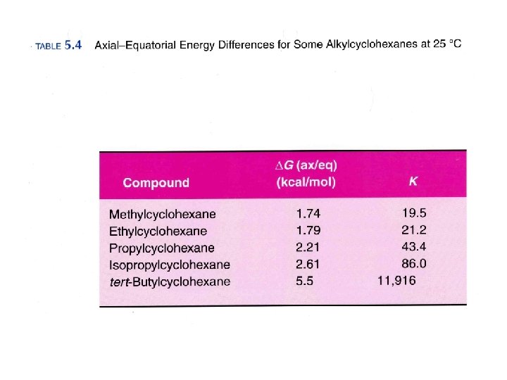 Methylcyclohexane axial methyl is destabilized by 1. 7 kcal/mol (axial strain energy) K = 18 95% CH 3 is equatorial 5% CH 3 is axial