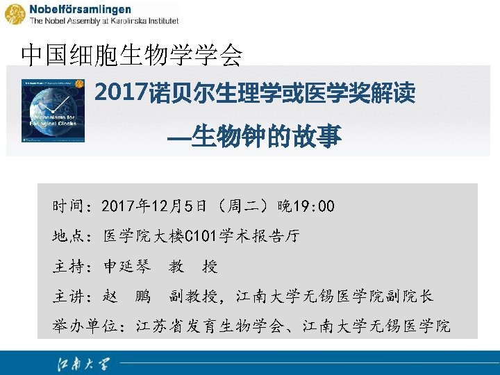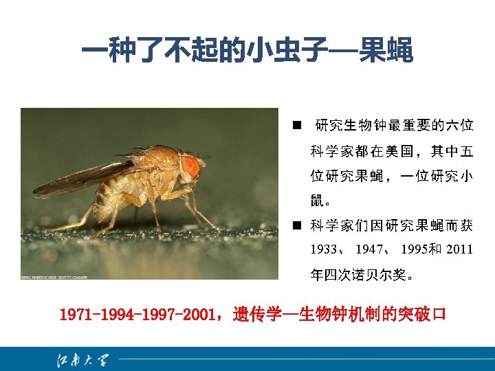 参考文献 n 勇气和运气:生物钟的分子研究|饶毅深度解读 2017年诺奖 网址:http: //url. cn/5 xvv. LVL n Zehring, W. A. , Wheeler, D. A. , Reddy, P. , Konopka, R. J. , Kyriacou, C. P. , Rosbash, M. , and Hall, J. C. (1984). P-element transformation with period locus DNA restores rhythmicity to mutant, arrhythmic Drosophila melanogaster. Cell 39, 369– 376. n Bargiello, T. A. , Jackson, F. R. , and Young, M. W. (1984). Restoration of circadian behavioural rhythms by gene transfer in Drosophila. Nature 312, 752– 754. n 诺奖主页网址:https: //www. nobelprize. org/nobel_prizes/medicine/