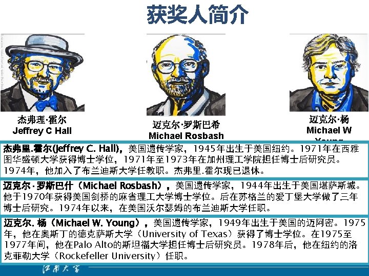 获奖理由 for their discoveries of molecular mechanisms controlling the circadian rhythm