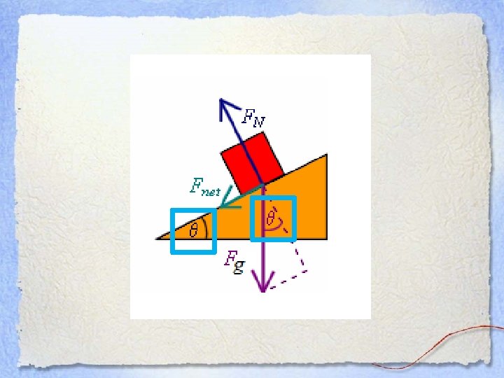 Calculating Normal Force • The magnitude of the normal force can be calculated as: Fn = mgcosΘ • The angle (Θ)is the angle between the normal force and a vertical line and is also the angle between the contact surface and the horizontal
