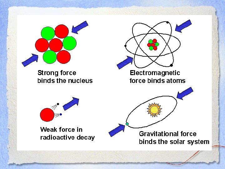 The Fundamental Forces • Four fundamental forces exist in nature – They are the gravitational force, the nuclear strong force, the weak nuclear force, and the electromagnetic force – These are all field forces