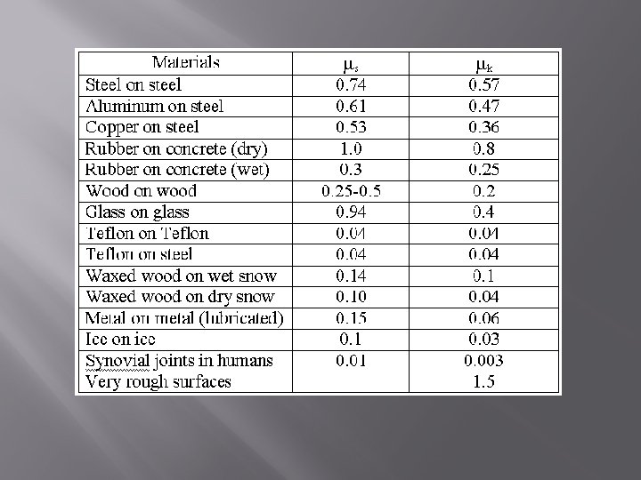To calculate force of friction (FF), use the equation: FFr = μFN or μ = FFr /F N μ = coefficient of friction, constant for any two types of matter μ = ratio of the frictional force to the normal force Frictional force is directly proportional to the μ.