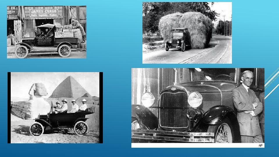 THE FORD MODEL T WAS AN IMPORTANT INVENTION TO PEOPLE ALL AROUND THE WORLD. IT CHANGED THE WAY PEOPLE LIVE, WORK, AND TRAVEL.