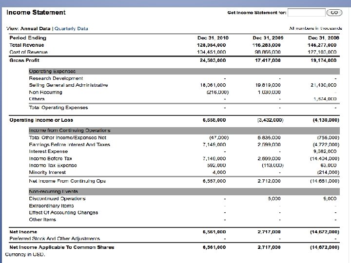 Opportunities (cont’d) • Weakness of Toyota – Has been hurt by recall and safety issues – Production remains below capacity after earthquake/tsunami – Strength of the Yen = expensive exports – Also applies to all other Japanese automakers: Nissan, Honda, Mazda, Subaru, others • Debt Reduction – Ford paid down about $3 B in debt in the 1 st Quarter of 2011 (reduced debt from 19. 1 B to 16. 6 B) – Will save $190 M per year in interest – Ford’s credit rating remains BB-minus, but S&P’s said that Ford’s focus on debt reduction is “a positive factor”