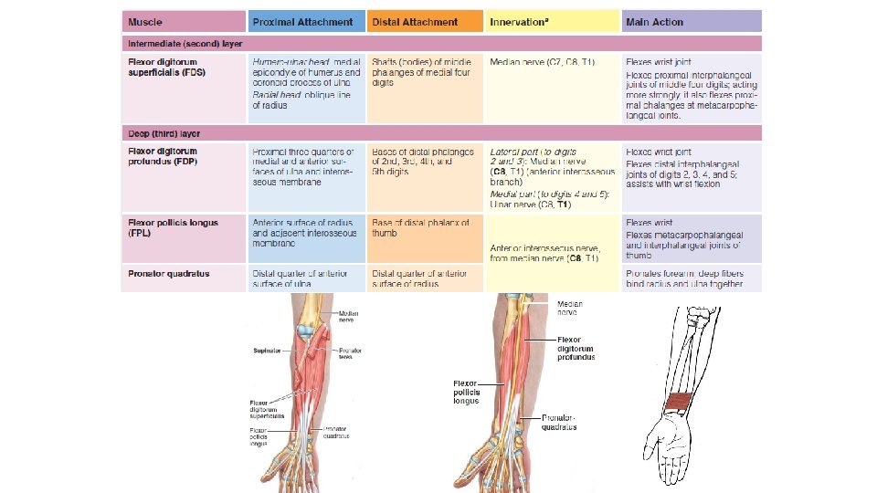 Deep muscles of front of forearm Flexor Digitorum Profundus Flexor Pollicis Longus Pronator Quadratus