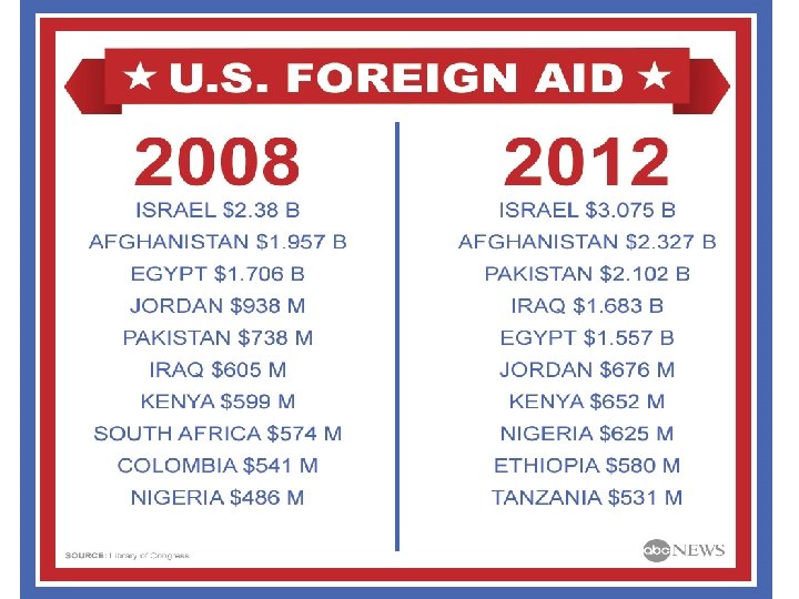 • Since 1946, the United States has given over $146 billion in humanitarian assistance to foreign countries. • In 1985, the United States provided over $10 billion in non-military aid abroad, ranging from free food to balance-of-payments support to project-assistance and population-planning programs.