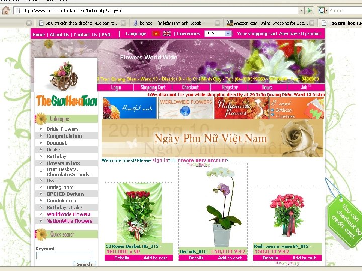 e-Commerce Success Factors Content – Nội dung Selection & Value Performance & Service Look & Feel Commerce – Thương mại Context – Thẩm mỹ Advertising & Incentives Some Key Factors for Success in E-commerce Personal Attention Communication – Giao tiếp Customiza. . . Cá biệt hóa Community Relationships Cộng đồng Security & Reliability Connection / An toàn, bảo mật