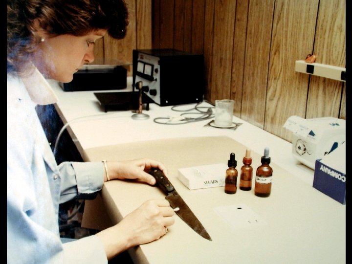 Three questions that must be answered by the forensic investigator: 1) Is it blood? Benzidine Test Kastle-Meyer Test Hemastix (o-tolidine, TMB) Luminol Test 2) Is it human blood? Precipitin Test 3) Can it be associated with an individual?