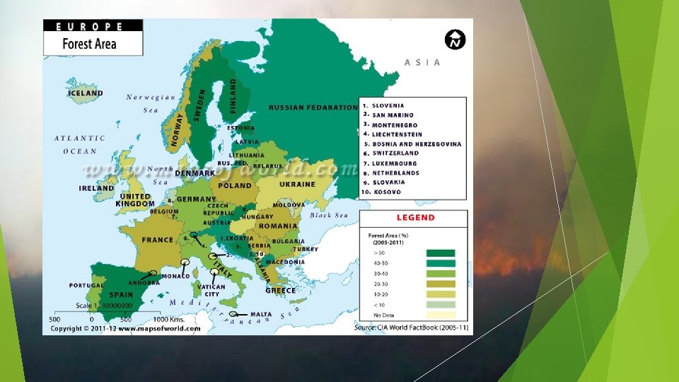 Forests in the world and in Europe � The total area of the world's forests is approximately 4, 033, 060 thousand ha. The average forest cover in countries around the world (in relation to land area) is approximately 31% (about 0. 60 ha of forest per 1 person, ie. about 2. 5 times higher than in Poland). � The countries with the largest forest area (as a percentage of total forest area of the world) are: Russia (20%), Brazil (13%), Canada (8%), USA (7%) and China (5%). European Union countries with the forest area of about 157 million hectares constitute about 4% of the world's forests. Poland (9. 3 million ha) occupies the 55 th place in regard to the forest area.