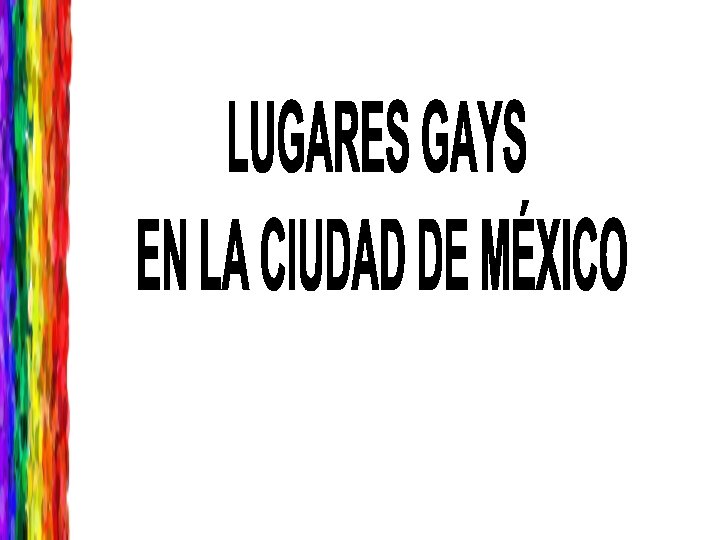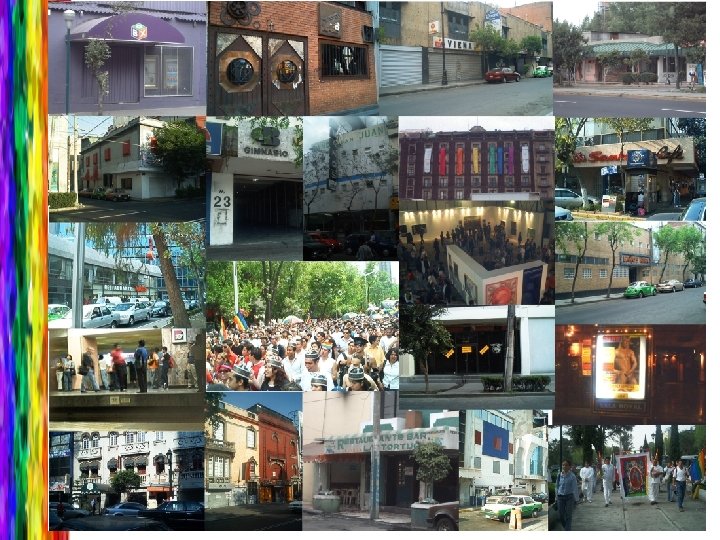 · Marcha LGBTT · Firma Simbólica de las Anuales Espacios públicos (Apropiaciones temporales) Sociedades de Convivencia · Muestras de cine con temática gay · Semana Cultural Lésbico. Gay · Marcha Silenciosa Diarias · Estaciones del metro · Parques · Calles · Plazas comerciales Propios · Bares y discotecas · Lugares de encuentro · Restaurantes · Librerías Lugares gays Espacios privados o cerrados Adaptados · Baños públicos · Cines · Teatros