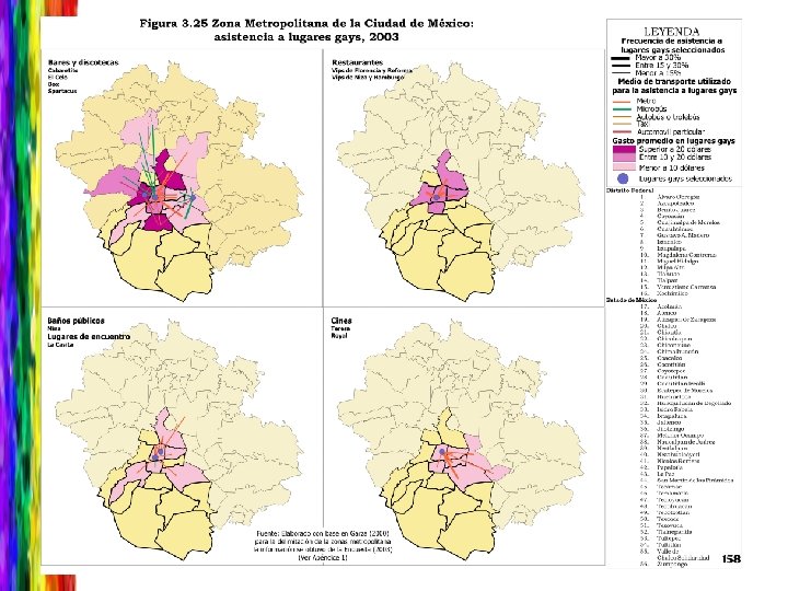 Entidad Estatal Distrito Federal Tipo de establecimientos Número de establecimientos A. Bares y discotecas B. Cafeterías restaurantes 60 y Número de establecimientos * Municipal o delegacional A Azcapotzalco 1 Benito Juárez 4 2 Cuauhtémoc 34 22 Gustavo A. Madero 26 1 Iztapalapa 3 C. Baños públicos 4 Miguel Hidalgo 5 D. Cines 3 Venustiano Carranza 3 E. Teatros 2 Chalco 1 Coacalco 1 Cuautitlán 1 Naucalpan 1 Nezahualcóyotl 2 Texcoco 1 Tultitlán 3 F. Lugares encuentro G. Librerías de 10 1 Estado de México B 1 C D E F G 1 4 3 2 9 1