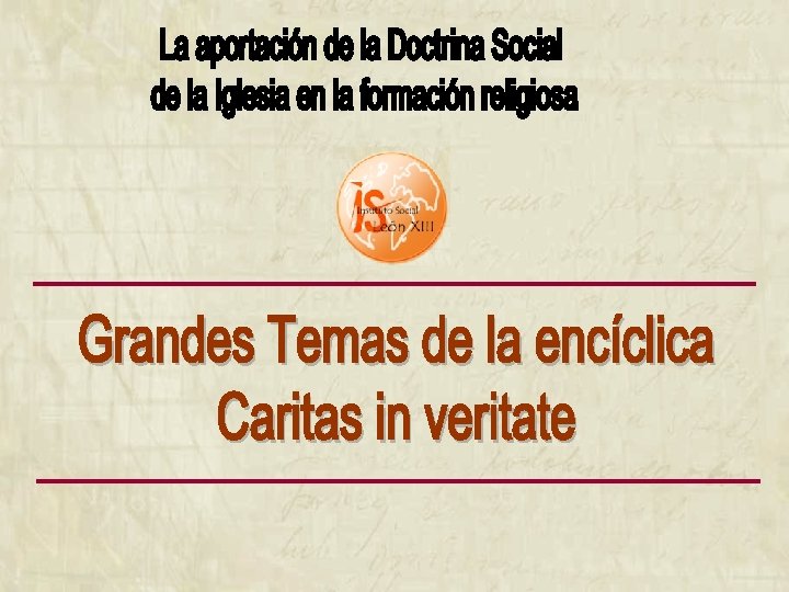 Formación del profesorado Instituto Social León XIII COMPROMISO CRISTIANO EN EL DESARROLLO INTEGRAL: En el contexto social y cultural actual, vivir la caridad en la verdad lleva a comprender que la adhesión a los valores del cristianismo no es sólo un elemento útil, sino indispensable para la construcción de una buena sociedad y un verdadero desarrollo humano integral. Toda la Iglesia, en todo su ser y obrar, cuando anuncia, celebra y actúa en la caridad, tiende a promover el desarrollo integral del hombre. Tiene un papel público que no se agota en sus actividades de asistencia o educación, sino que manifiesta toda su propia capacidad de servicio a la promoción del hombre y la fraternidad universal cuando puede contar con un régimen de libertad (CV, 11). GRANDES TEMAS II
