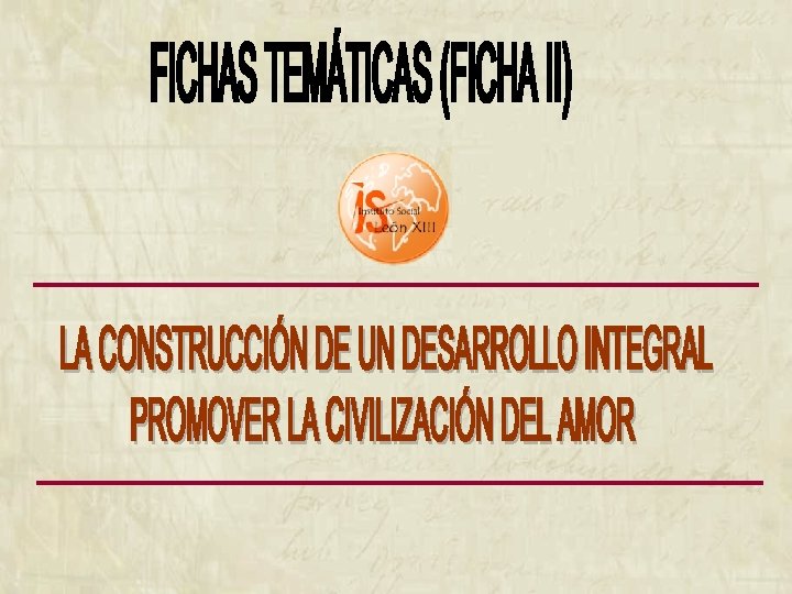 Formación del profesorado Instituto Social León XIII CONSTRUIR LA CIVILIZACIÓN DEL AMOR PROMOVIENDO LA VERDAD DEL DESARROLLO ANTE LA FALSA TOLERANCIA, LA IDEOLOGÍA SECULARISTA Y LA DESMORALIZACIÓN APERTURA MORAL A LA VIDA ANTE LA CONFUSIÓN DE LOS PLANTEAMIENTOS DEMOGRÁFICOS GRANDES TEMAS II RESPETO A LOS DERECHOS HUMANOS BASADOS EN LA LEY NATURAL E INSCRITOS EN LAS CULTURAS