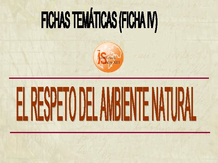 Formación del profesorado Instituto Social León XIII TEXTOS BÍBLICOS : La naturaleza es expresión de un proyecto de amor y de verdad. Ella nos precede y nos ha sido dada por Dios como ámbito de vida. Nos habla del Creador (cf. Rm 1, 20) y de su amor a la humanidad. La naturaleza está destinada a encontrar la « plenitud » en Cristo al final de los tiempos (cf. Ef 1, 910; Col 1, 19 -20). También ella, por tanto, es una « vocación» . La naturaleza está a nuestra disposición como un don del Creador que ha diseñado sus estructuras intrínsecas para que el hombre descubra las orientaciones que se deben seguir para « guardarla y cultivarla » (cf. Gn 2, 15) GRANDES TEMAS IV
