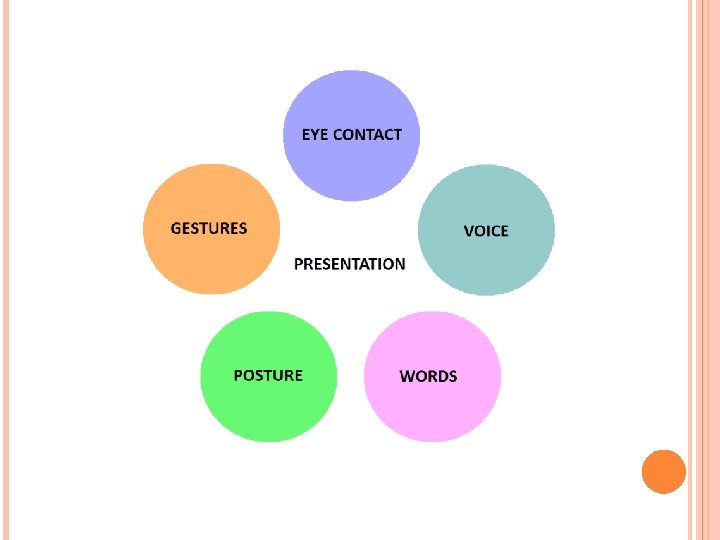 1. EYE CONTACT Look at your audience, not the floor or your paper! It’s okay to look at certain people, but don’t look at them for too short/long. If you are too shy to look at the audience, you can look a little bit over their heads.