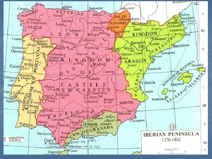 Formação do Estado espanhol n n n Invasão moura- Califado de Córdoba A região norte ficou sob controle dos reinos cristãos de Leão, Castela, Navarra, Aragão e o Condado de Barcelona. Guerra da Reconquista (séc. XI ao XV) Em 1469, a presença muçulmana estava restrita ao Reino Mouro de Granada Casamento de Isabel de Castela e Fernando de Aragão (1469)