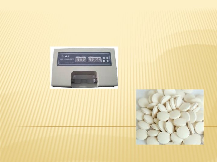 1. Dureza y Friabilidad: Dureza es la capacidad del comprimido para resistir la ruptura. Esta prueba es útil para determinar las propiedades de la capa, al igual que la friabilidad que mide la resistencia de la capa al rompimiento o al resquebrajamiento.