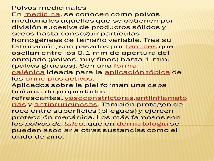 Granulados v Agregados de partículas de polvos que incluyen principios activos, azúcares y coadyuvantes diversos. v Se presentan en forma de pequeños granos de grosor uniforme, forma irregular y más o menos porosidad. v Existen granulados de distintos tipos: efervescentes, recubiertos, gastrorresistentes y de liberación modificada