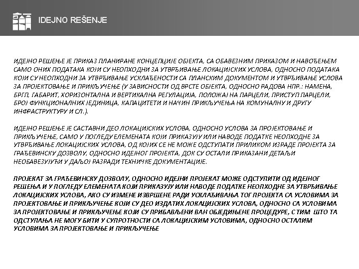 IDEJNO REŠENJE Da li je idejno rešenje sastavni deo lokacijskih uslova? Da li je obavezno imenovanje glavnog i odgovornog projektanta idejnog rešenja?