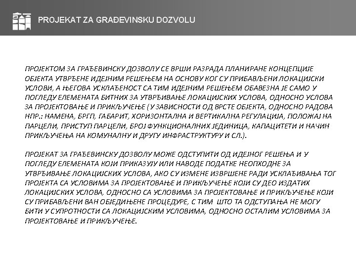 PROJEKAT ZA GRAĐEVINSKU DOZVOLU Šta je projekat za građevinsku dozvolu?