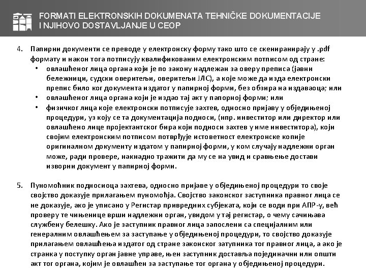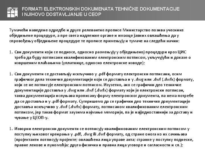 FORMATI ELEKTRONSKIH DOKUMENATA TEHNIČKE DOKUMENTACIJE I NJIHOVO DOSTAVLJANJE U CEOP