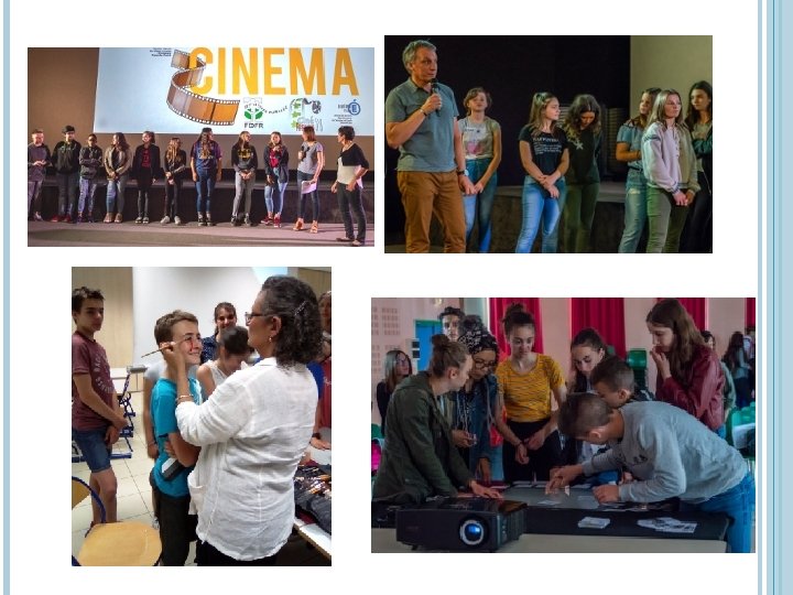 ATELIERS VIDÉOS ET FORUM DES MÉTIERS DU CINÉMA En 2016, 300 collégiens de 8 établissements se sont rendus au lycée Parriat de Montceau-les-Mines. En 2017, participation d’une centaine d’élèves issus de 7 collèges. En 2018, 215 élèves de 8 collèges et 2 lycées, 13 courts-métrages projetés le matin autour de la thématique « Histoire du cinéma, histoires de cinéma » . À l’issue des projections, un vote a eu lieu pour élire trois films coups de cœur qui seront projetés en amont des séances Collège au Cinéma 20182019, dans les cinémas partenaires du département : -coup de cœur des élèves : Pour une poignée de clash, Collège Les Chênes Rouges – Saint-Germain-du-Plain -coup de cœur des enseignants : Comme dans un film , collège Roger Vaillant – Sanvignes-les-Mines -coup de cœur des organisateurs : Des rêves plein les cheveux, collège Victor Hugo – Lugny Rencontre avec des professionnels du cinéma sous forme d’ateliers tournants de 20 minutes l’après-midi : producteur, scripte, ingénieure du son, monteur, chef électricien. Atelier Mash. Up (table de montage ludique) http: //artsculture. ac-dijon. fr/spip. php? article 1526