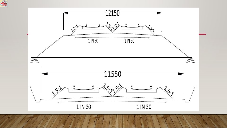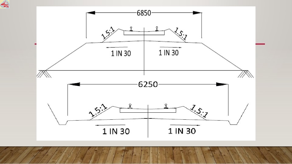 EMBANKMENT • That part of the Railway land where originally ground is low, subsequently raised by earth work to give the adjacent level which was decided during the survey. • Side slope of the embankment is 2: 1 (Horizontal : Vertical)