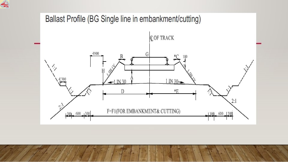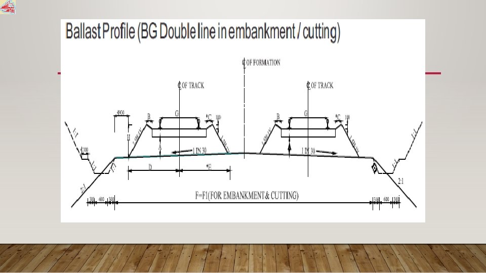 TERMS ASSOCIATED WITH FORMATION • Sub-ballast is a layer of coarse-grained material provided between blanket/sub-grade and ballast and confined to width of ballast section only. • To reduce the effect of loads transmitted to formation through ballast and • To guard against the possibility of ballast penetration into the formation. • It is desirable to provide a sub-ballast of 15 cm depth below the ballast layer. • The need to provide this sub-ballast may be decided by Chief Engineer (Const. ) in-charge of the project”.