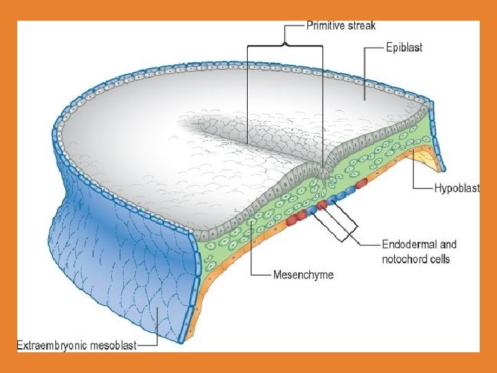 GASTRULATION: FORMATION OF GERM LAYERS • As soon as the primitive streak appears, it is possible to identify the embryo's • • Craniocaudal axis, Cranial and caudal ends, Dorsal and ventral surfaces, Right and left sides.