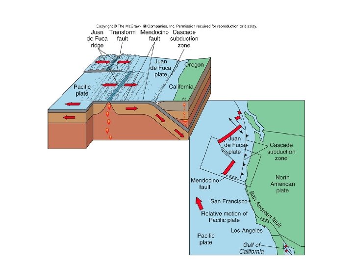 Transform Faults • Two plates slide by each other • Numerous earthquakes along faults • Common in divergent and convergent margins