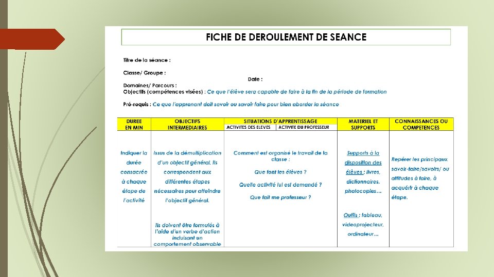 Synthèse des incontournables • Séquence • Séances • Objectifs • Compétences: connaissances, compétences, attitudes • Evaluation