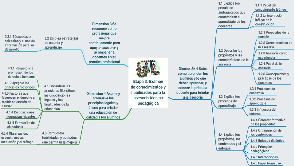 Etapa 3. Examen de conocimientos y habilidades para la asesoría técnica pedagógica ¿Qué evalúa? • Los contenidos en el examen se recuperan de las dimensiones 1 y 4: ØPrincipios que caracterizan el aprendizaje de los docentes ØPropósitos y características de la asesoría técnica pedagógica ØProcesos de enseñanza aprendizaje de los alumnos ØConocimientos curriculares ØPrincipios filosóficos y disposiciones legales en el ejercicio de la asesoría ØEstrategias de estudio y de aprendizaje