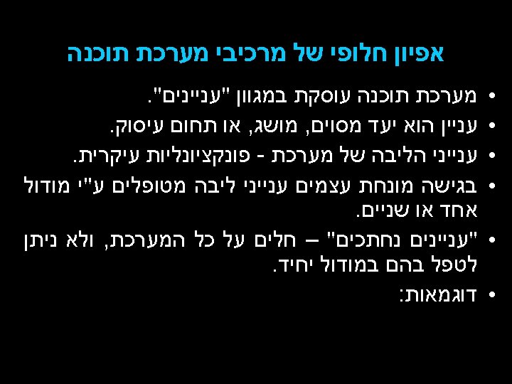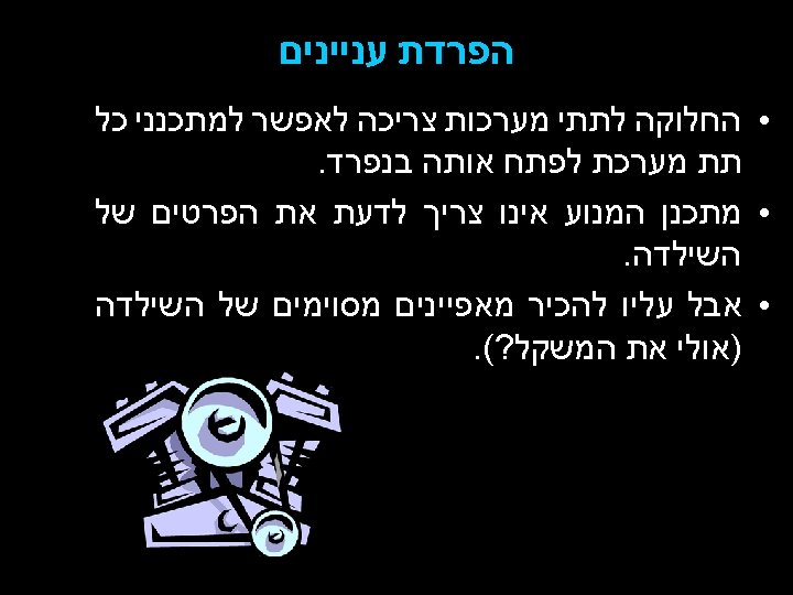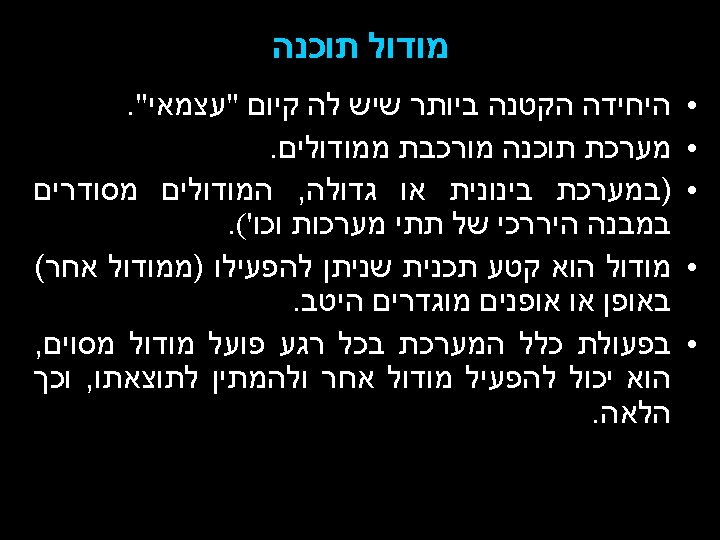 ? מה זה מחשב Editor E-mail Web Browser Operating System Hardware: CPU, Network, I/O Other Applications