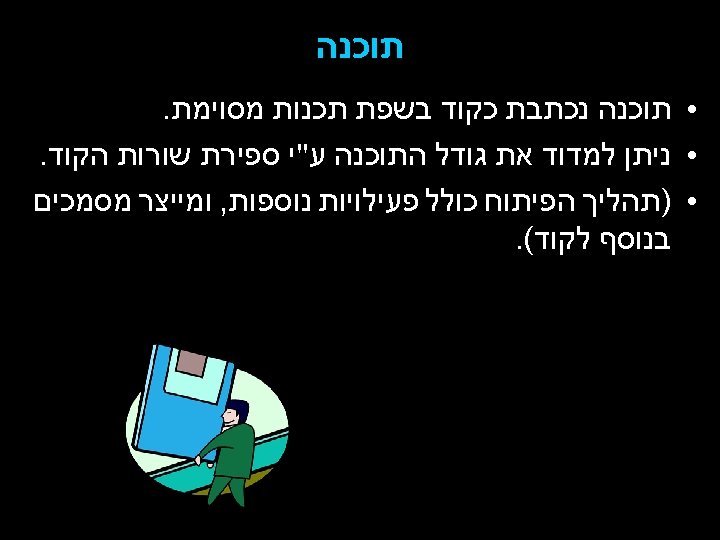הפשטה • Machine Language 5 A 50 F 9 F 0 • Assembly Language USING ADD 15, VARS 5, PRICE • High-Level Language total : = total + price;