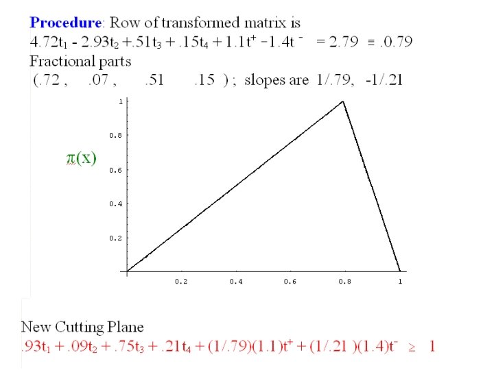 All of the three sided polygons create Facets • • For the continuous problem For the Integer Problem For the General problem Two Dimensional analog of Gomory Mixed Integer Cut