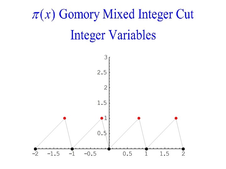Cutting Planes for Type Two • • Example: Gomory Mixed Integer Cut Variables ti Integer Variables t+, t- Non-Integer Valid subadditive function