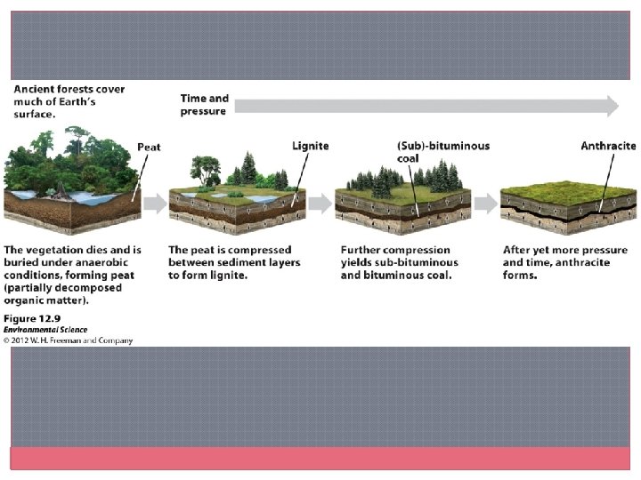 How fossil fuels were formed �When organisms die, decomposers break down the dead biomass aerobically & it quickly enters food web �In places like swamps, river deltas, and the ocean floor, where there is little to no oxygen (anaerobic), decomposers cannot break down all the detritus (dead biomass) �The detritus is buried under layers of sediment & exposed to heat & pressure, transforming it into high -energy solid, liquid, and gaseous components