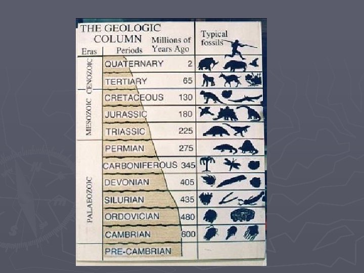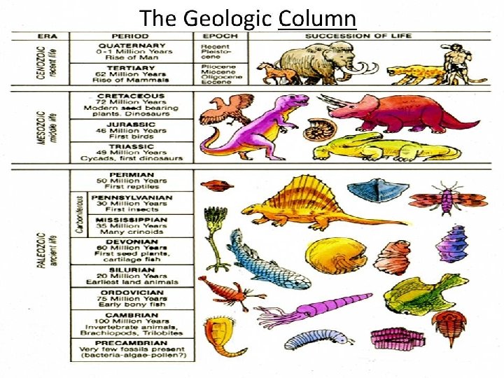 ► 58) The geologic column is how geologists have organized the entire history of the Earth in chronological order.