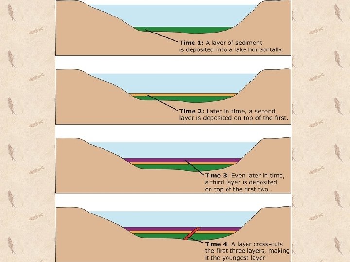 How many ways can you think to find the age of a fossil? • Carbon dating and fossil record are just two ways of determining the age of fossils. • Carbon dating uses a radioactive form of the element carbon to date dead organisms. – But it’s unreliable if the specimen is over 40, 000 years old. • The fossil record looks at the layers of rock to determine which layers are older than others. These layers are called “strata. ” – The oldest rock layers are the ones that got laid down first, or the ones at the bottom. – Fossils in the oldest layers will be the oldest fossils.