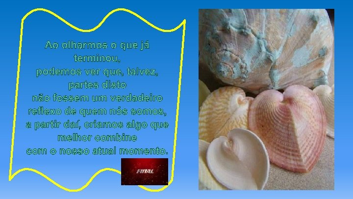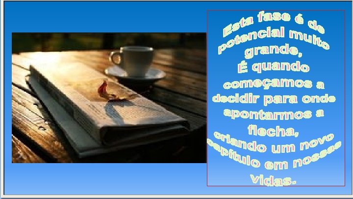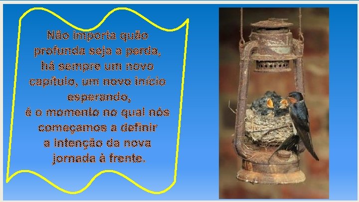 Nesse momento, surge um vislumbre da nova vida, novos sonhos começam a se formar.
