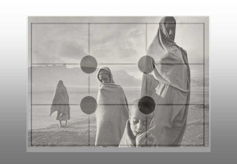 Regra dos terços O centro da imagem não é um ponto satisfatório de repouso do olhar. As imagens ficam estáticas, e podem deixar partes da fotografia vazias.