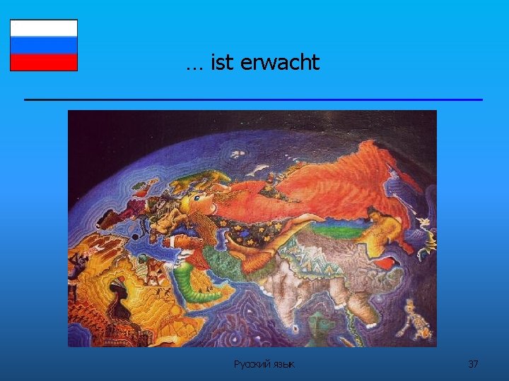 Russland – ein extremes und ein spannendes Land • Größtes Land der Erde (17. 075. 400 km 2) (Deutschland passt flächenmäßig 47 x in Russland hinein) • 142 Millionen Einwohner • neun Zeitzonen und vier Klimazonen • Temperaturen zwischen -50° und +30° • Hauptstadt Moskau (>12 Mio. Einwohner) • Extrem reich an Bodenschätzen (Gas, Öl…) Русский язык 17