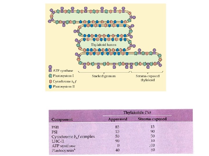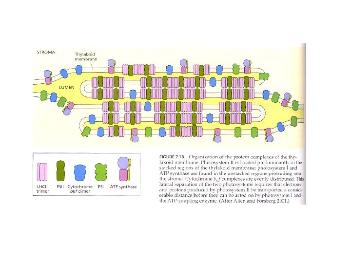 CITOCROMO b 6 f contiene tre carriers di elettroni: Citocromo di tipo b (cyt b 6 due gruppi eme) Citocromo di tipo c (cyt f un gruppo eme) Proteina di Rieske (gruppo Fe. S)
