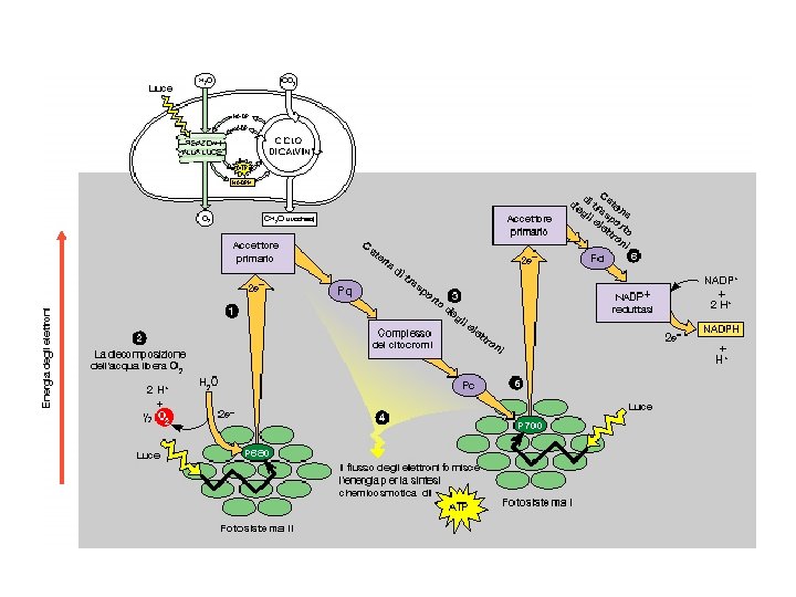 Reazioni alla luce captazione energia della luce produzione ATP e NADPH