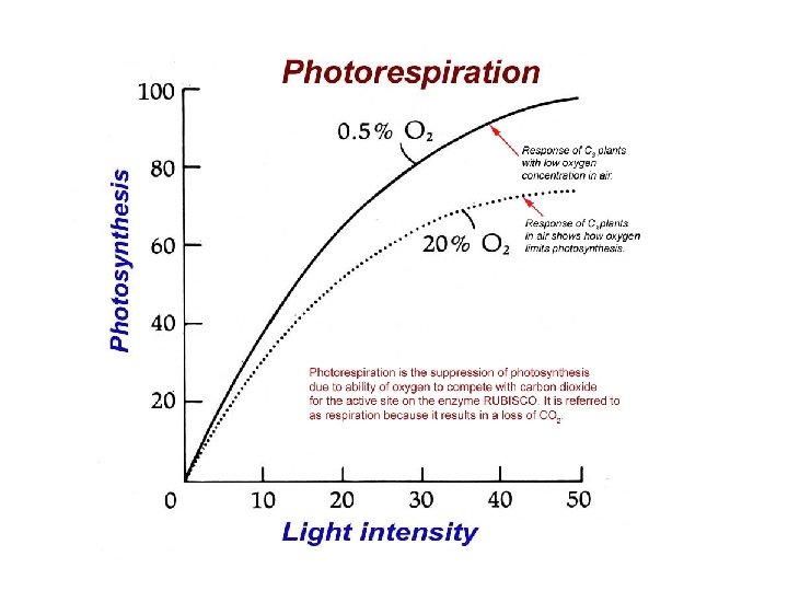 • Rubisco has ability to catalyze both the carboxylation and the oxygenation of Ru. BP. • Photoinhibition is a complex set of molecular processes, defined as the inhibition of photosynthesis by excess light.