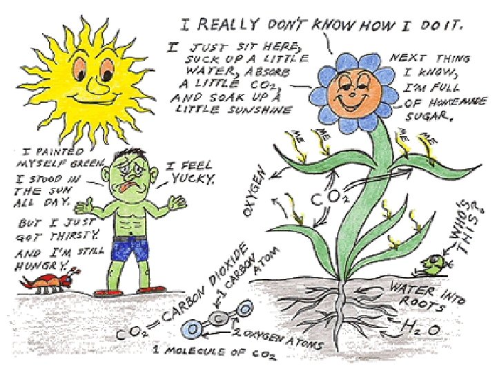 THERE ARE TWO PHASES IN PHOTOSYNTHESIS • THE “LIGHT REACTION” – H 2 o is split • 2 H 2 O O 2 + 4 [H+] – NADPH and ATP are generated • THE “DARK REACTION” – NADPH and ATP from the light reaction drives CH 2 O production. CO 2 AND [H+] : • 4 [H+] + CO 2 (CH 2 O) + H 2 O – It’s really light in-dependent reaction – You have already studied it • THE “CALVIN CYCLE”